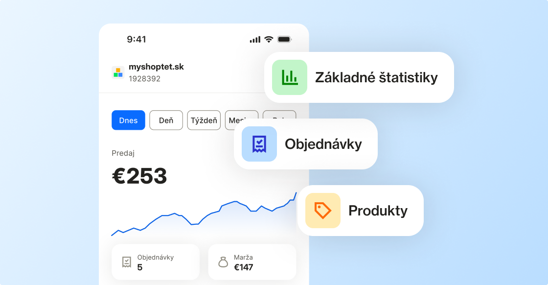 Získajte rýchly prehľad o výkonnosti e-shopu: sledujte denné tržby, marže, počet objednávok, ich stav alebo vývoj predajov v čase. Všetko uvidíte v prehľadných grafoch a číslach, ako ste zvyknutí z desktopovej administrácie.